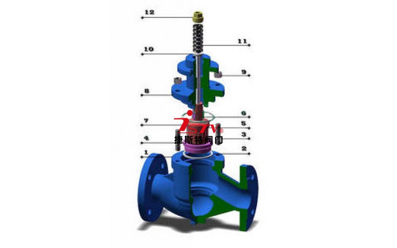 氣動薄膜籠式調節閥主要為降低可壓縮流體的噪音而設計的,為適應氣體節流擴散與膨脹,套筒上設有許多對稱小孔來降低壓力降,流體通道呈S流線型,閥芯采用壓力平衡式結構,由閥籠窗口曲線確定閥的流量特性,還設有一個改善套筒周圍流體平穩流動的導流翼,因此壓降損失小,流量大,噪音小。